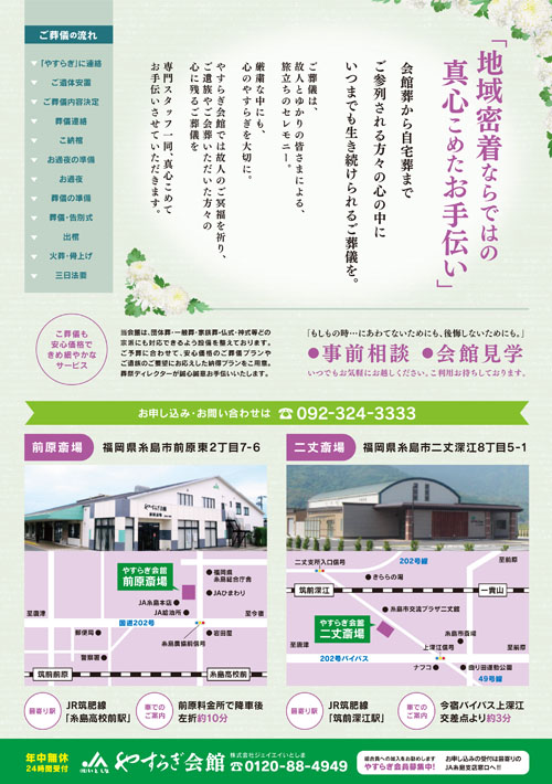 「やすらぎ」指定祭壇料金より、5%割引いたします。 但し、集落祭壇及び寺院祭壇等については対象外となります。 |